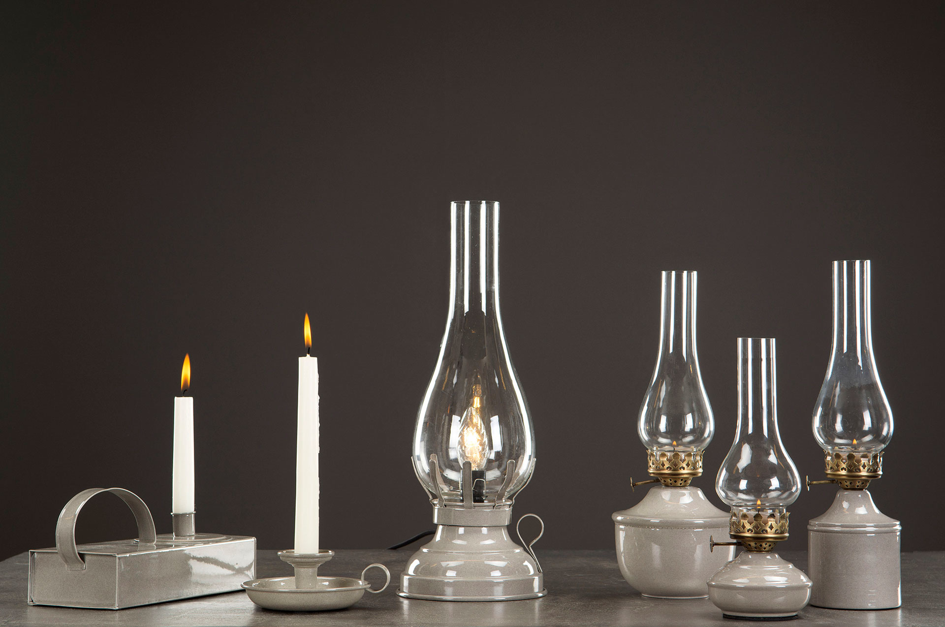 Oljelampa i gammaldags stil med plats för värmeljus. Avtagbar glascylinder.