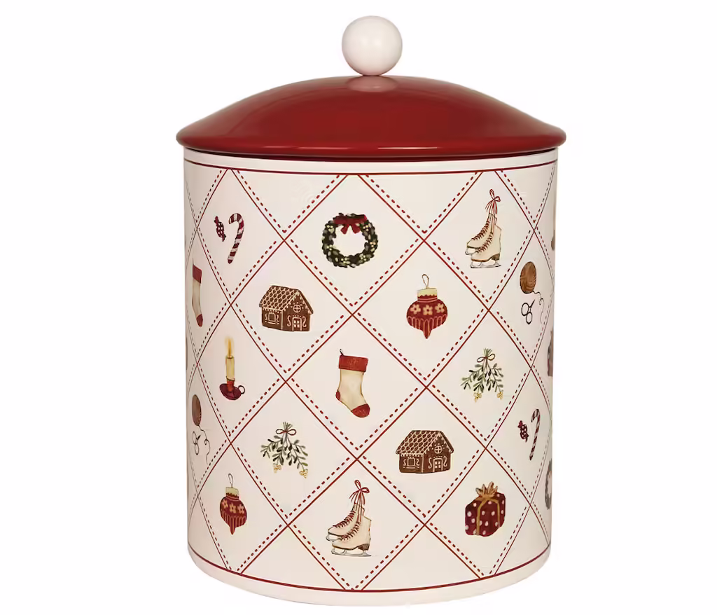 Gammaldags jul plåtburk med motivet av juletid i bilder i nostalgisk anda. Avtagbart lock med knopp. Fyll med pepparkakor och du har en perfekt gå-bort-present i juletid. Silikonringen i locket gör att burken blir tätt försluten.