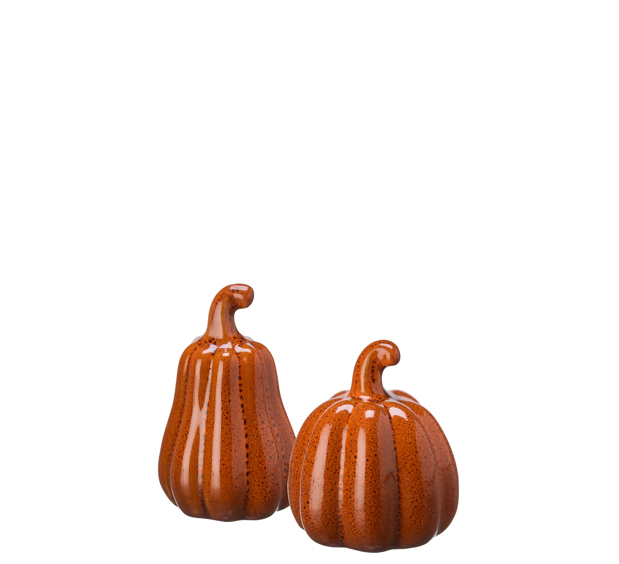 Orange melerad pumpa gjord i porslin. Fin som den är, eller varför inte använda den i dukningen för höstens alla mysiga middagar. Säljs i 2-pack, en av vardera design.
