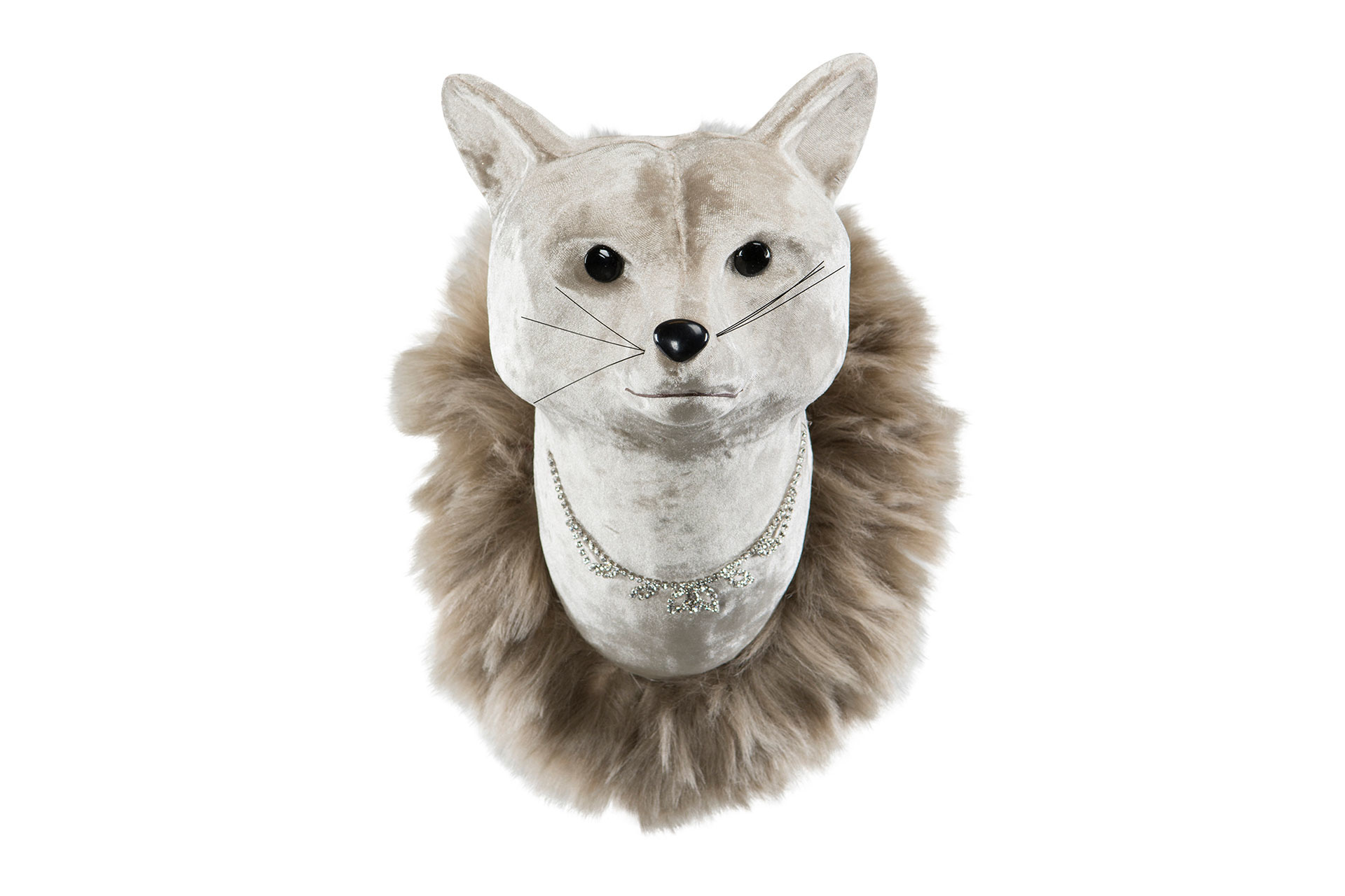 Ett supersött rävhuvud i tyg för väggen i barnrummet.