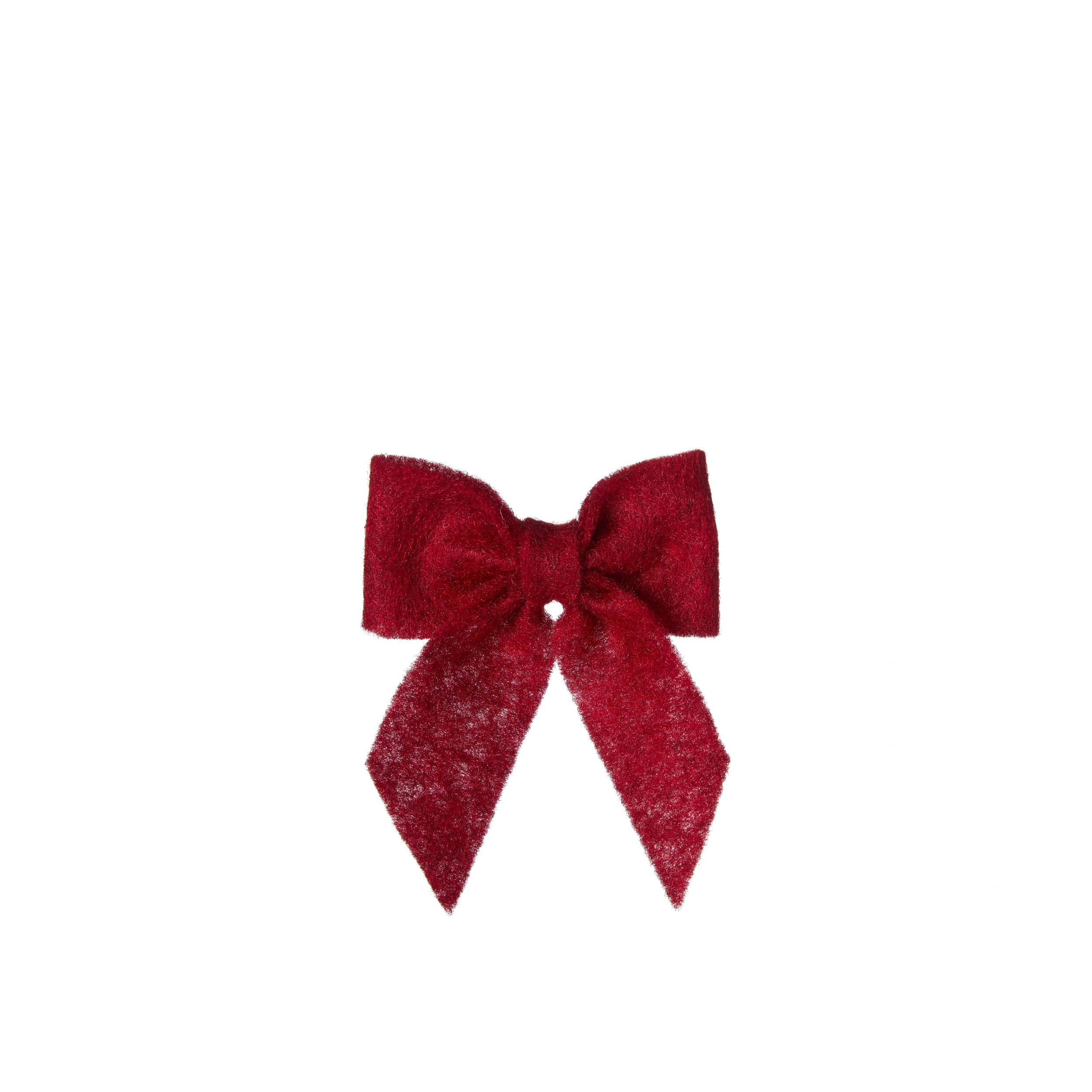 Fin rosett i textil med hänge. En juldekoration som passar perfekt att hänga i julgranen, på ett skåp etc.