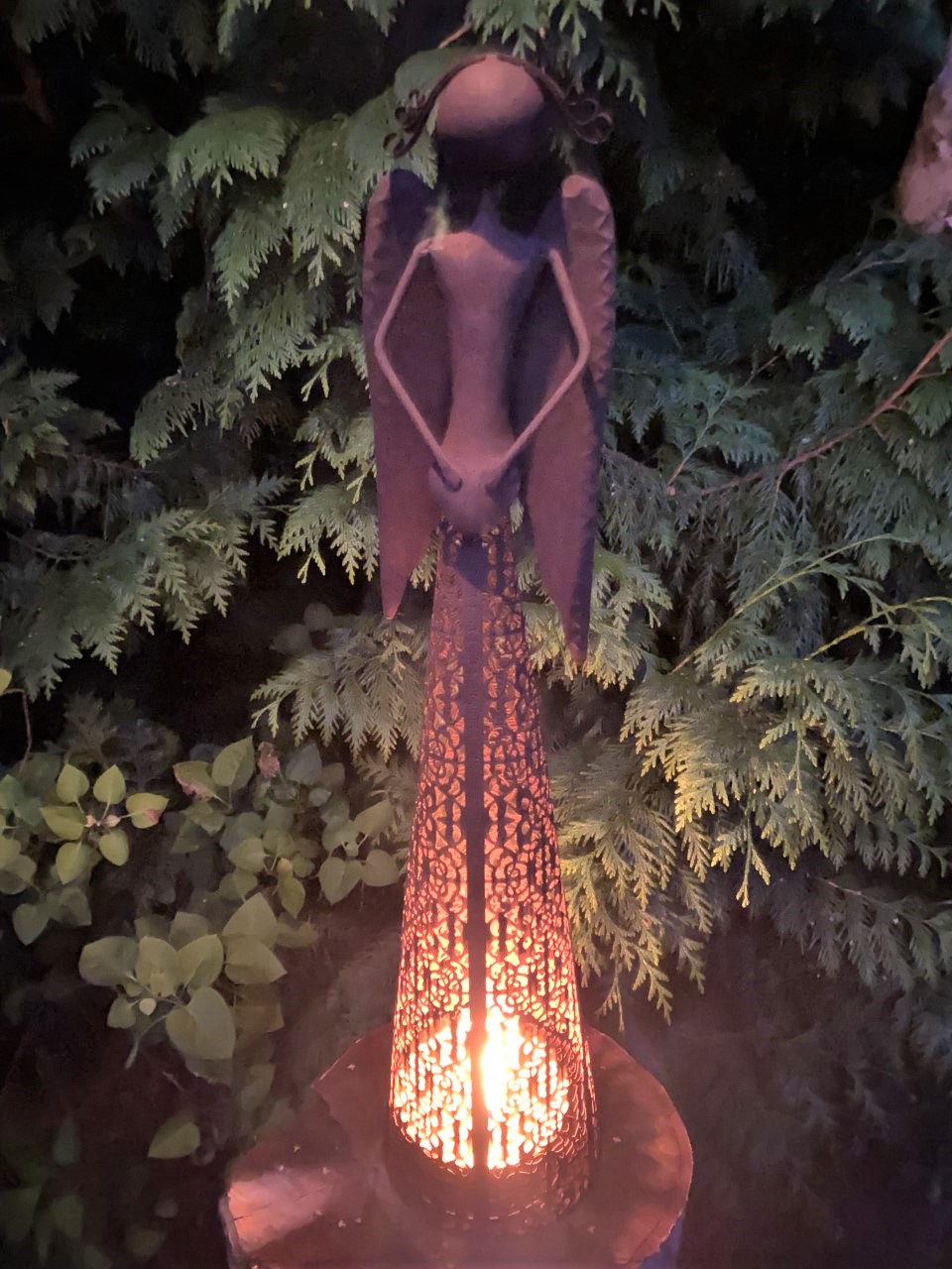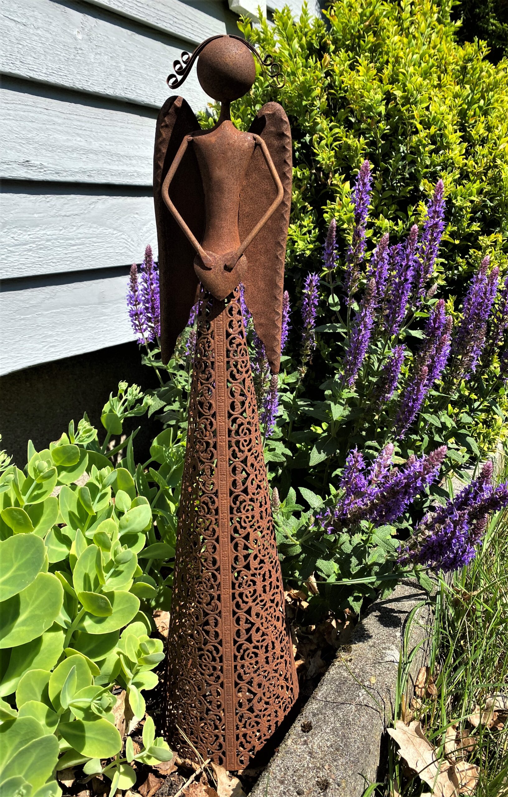 En underbar stor rostig ängel med vackert mönster i kjolen. Marschallhållare i botten.