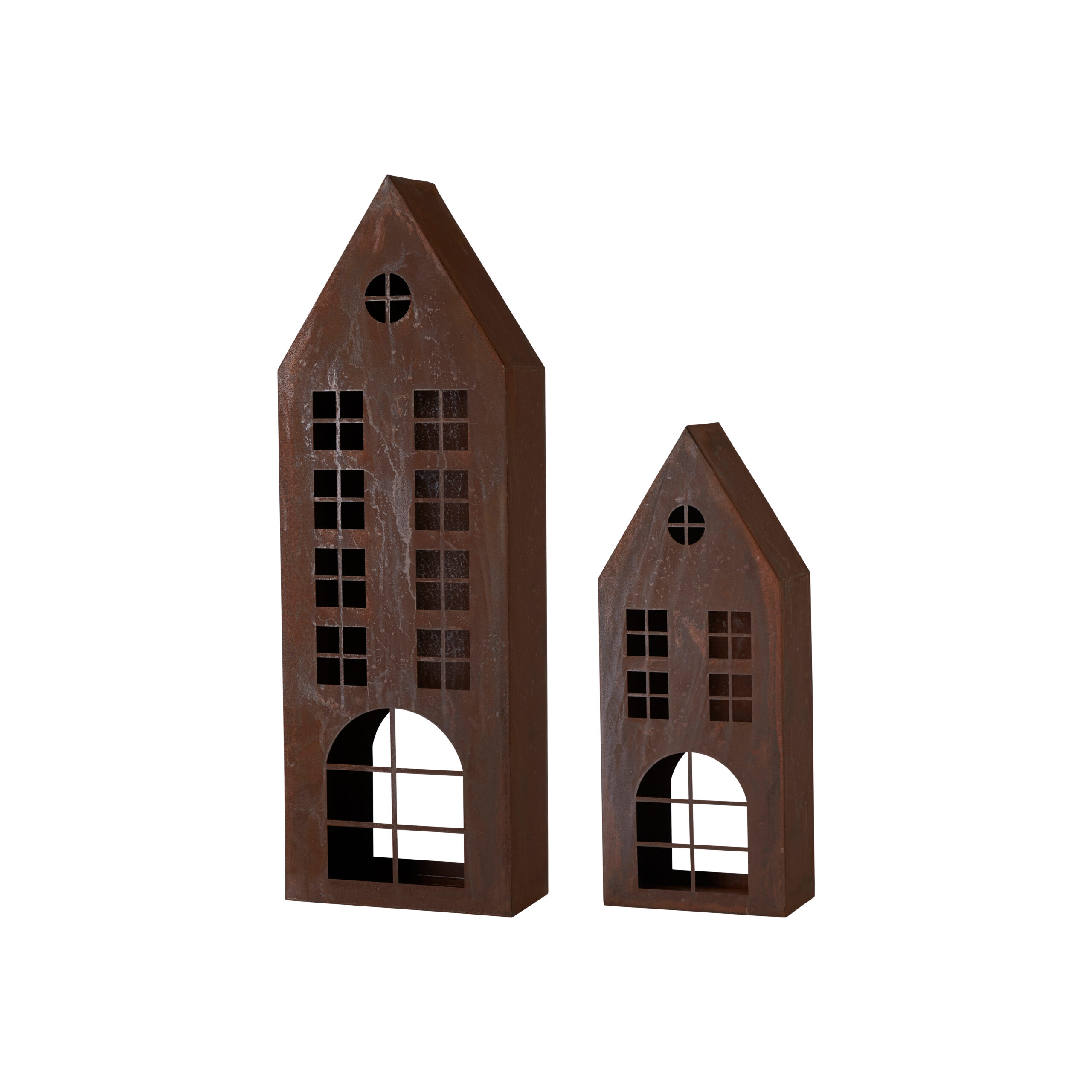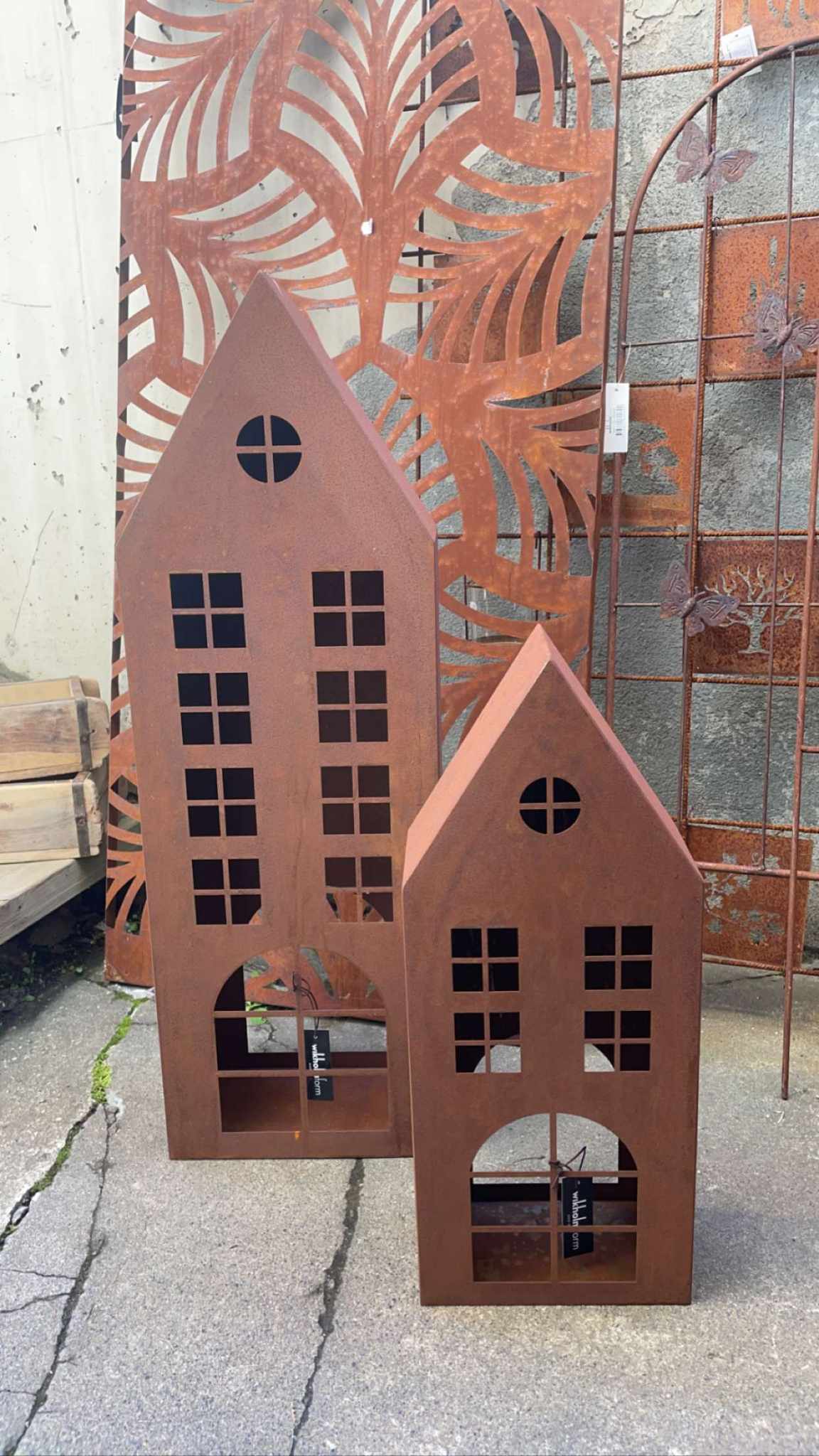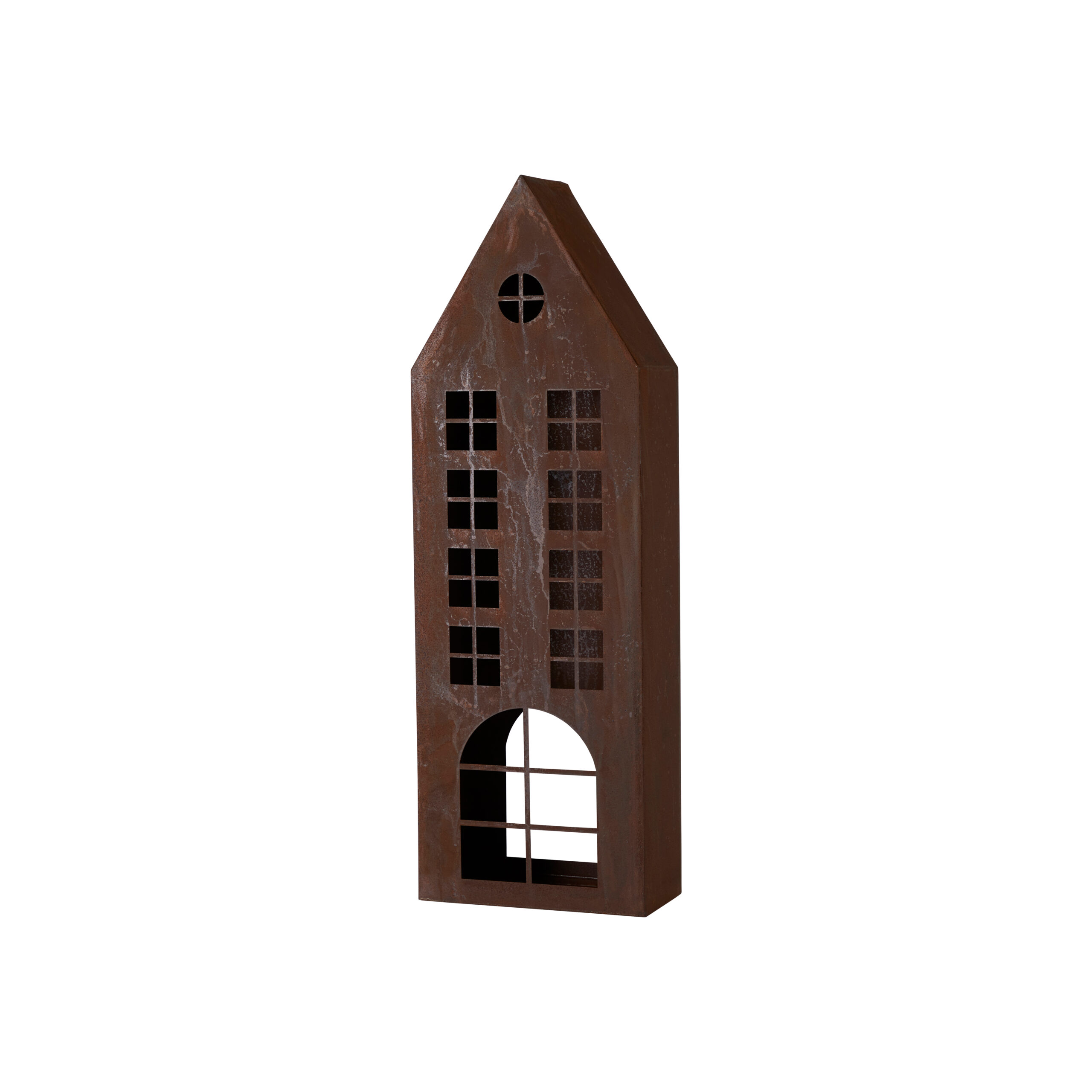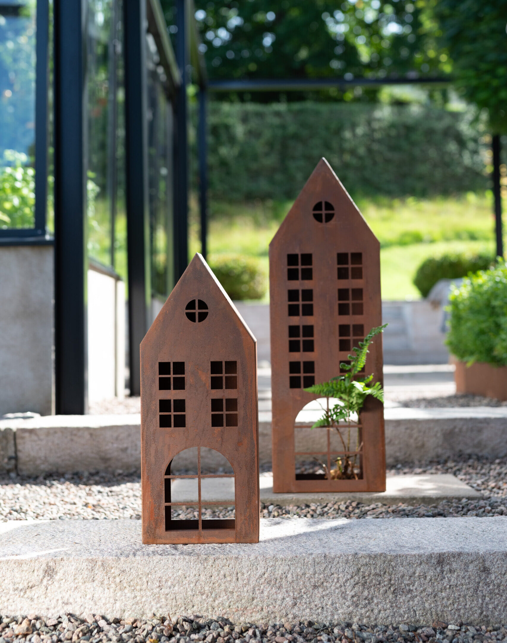 Mysigt ljushus / huslykta i rostbrunt järn. Ljushuset passar lika bra i trädgården som på bron eller inomhus med en ljusslinga eller LED-ljus inuti. Kommer i 2 storlekar. Detta är den större modellen.