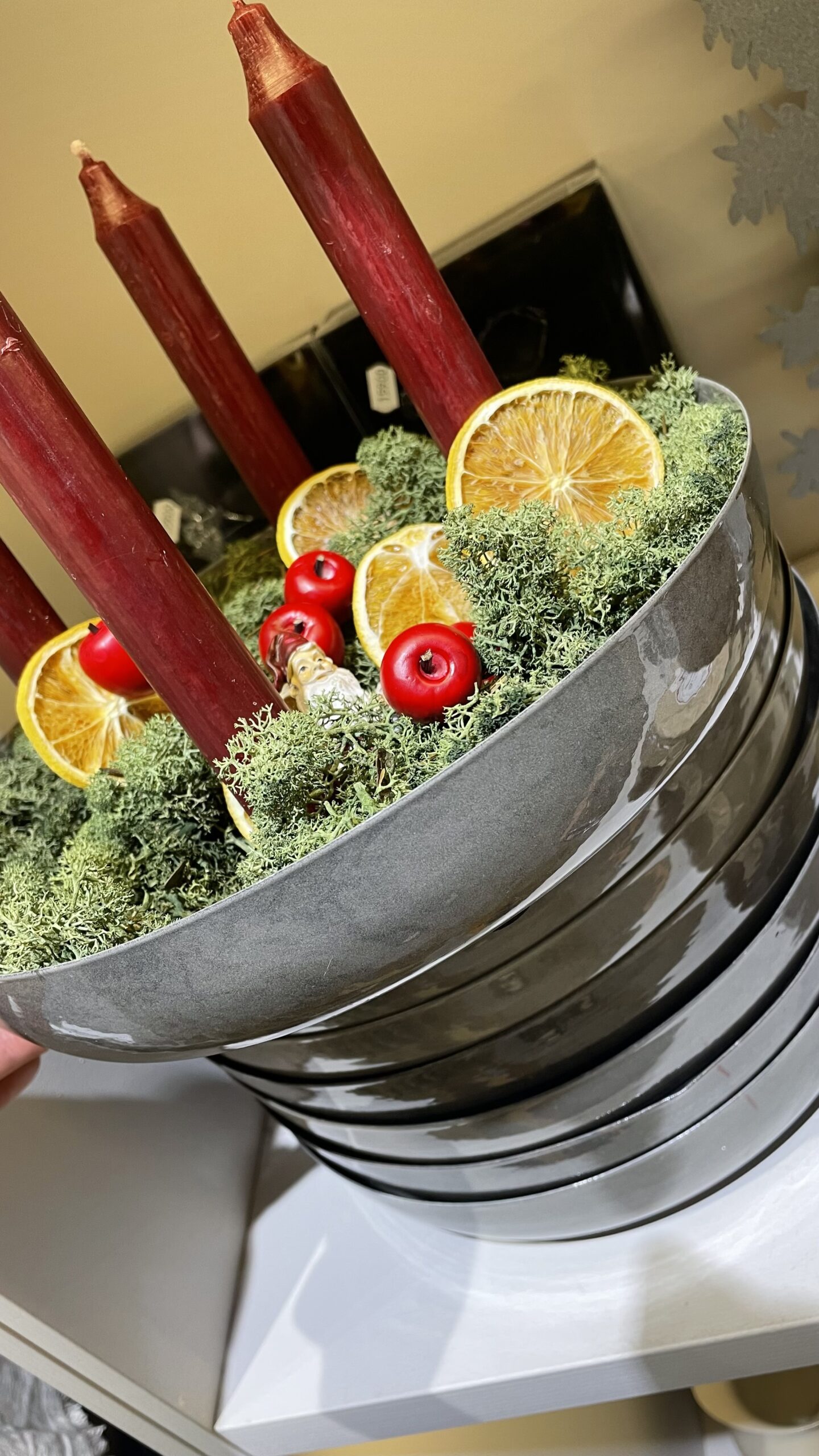 Köp till våran underbara flamsäkra dekorationsmossa, äpplen och LED ljus för ett komplett arrangemang.