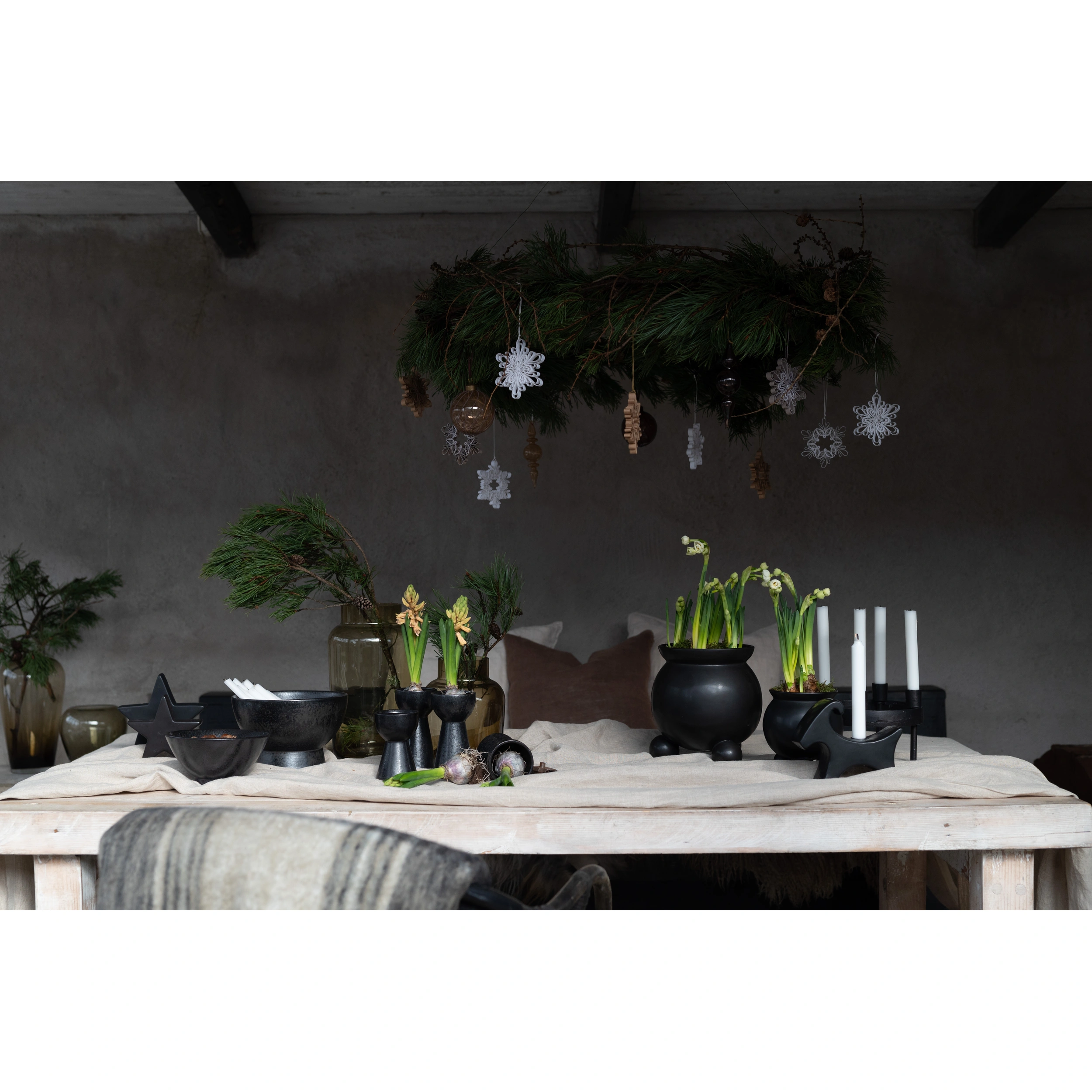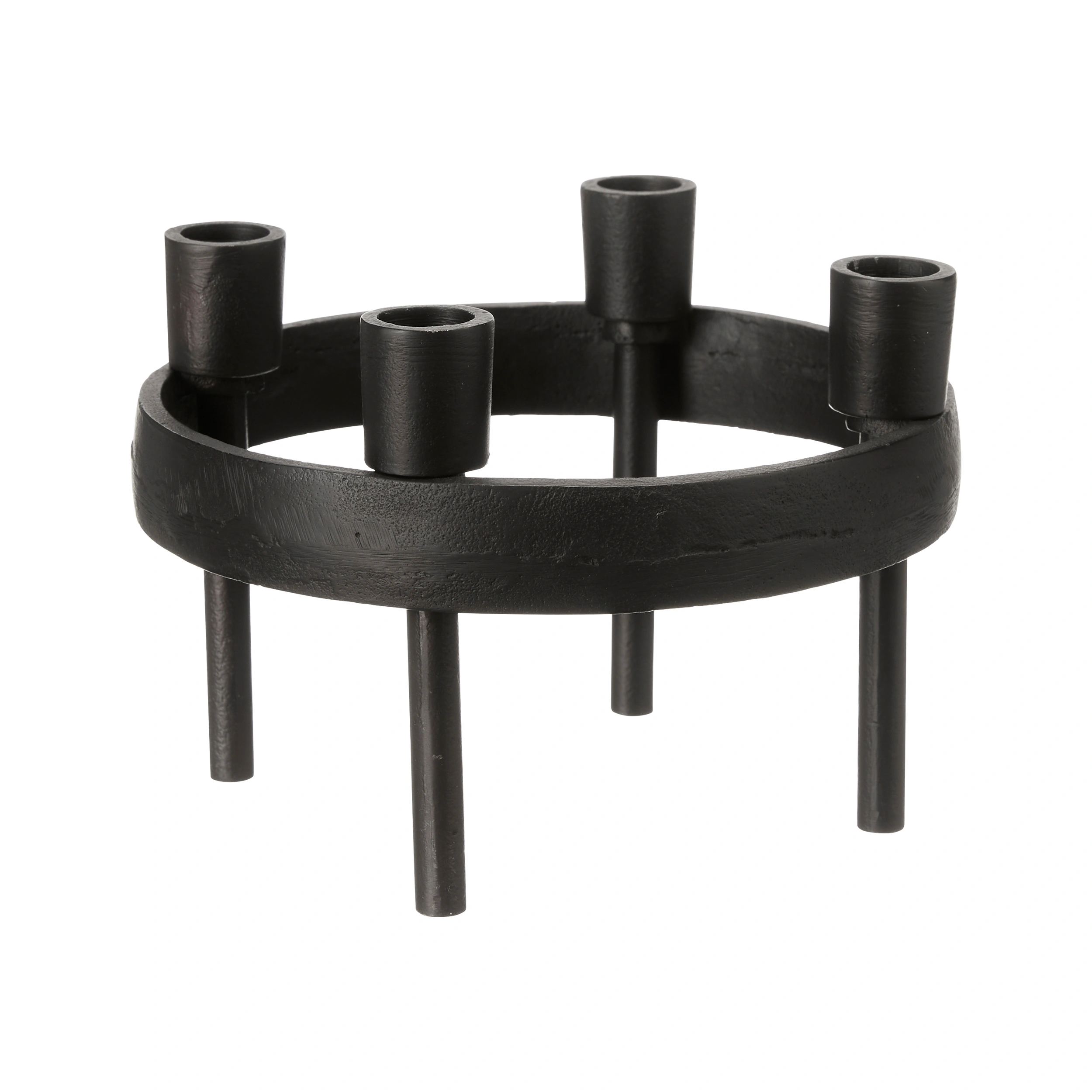 En stilren rund adventsljusstake i matt svart med plats för 4 st kronljus.