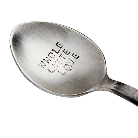 Handgjord rustik sked med text i set om 4 st. En annorlunda detalj eller present.