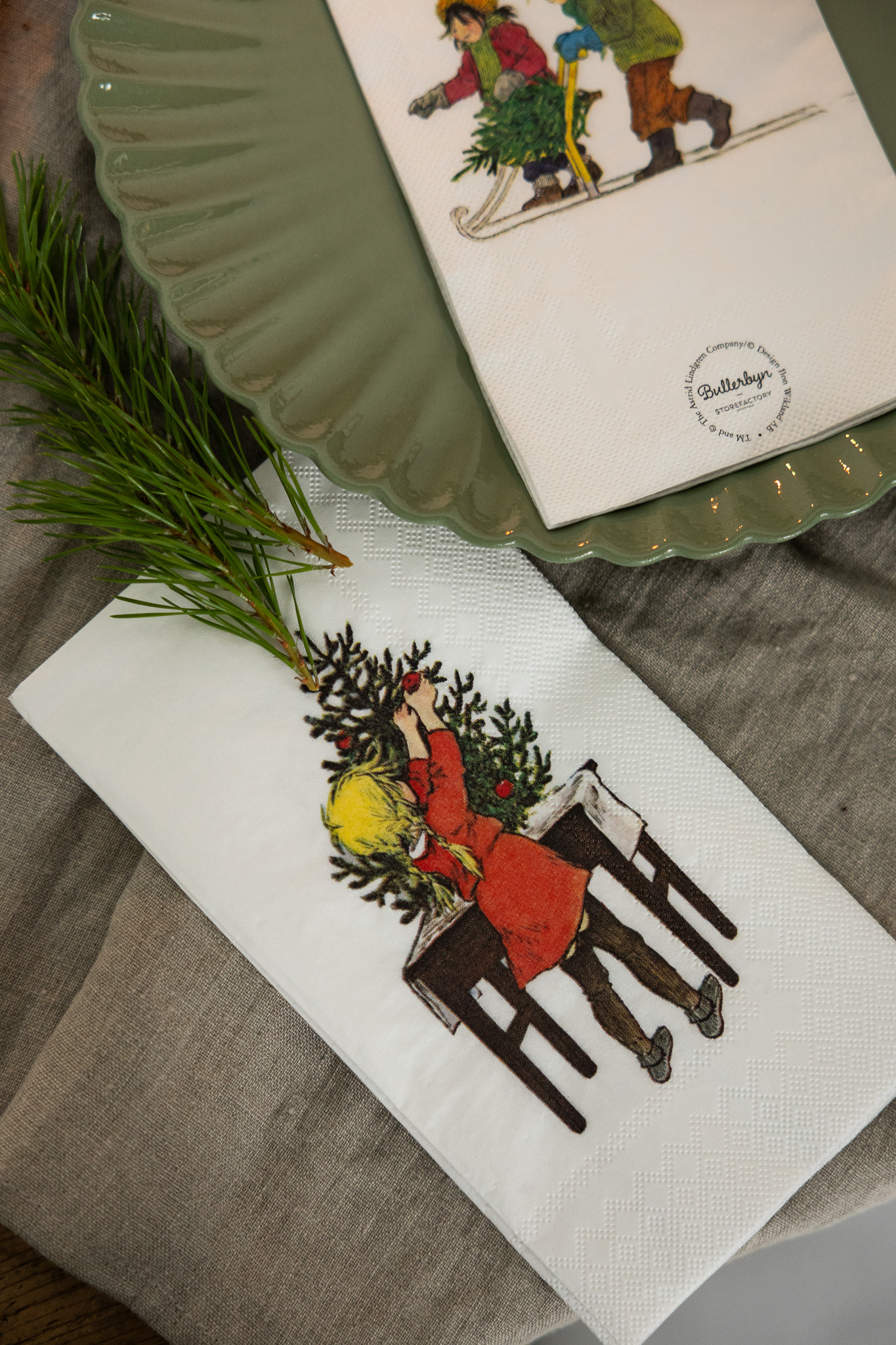 Pappersservett med Barnen i Bullerbyn-illustration. Med detta motiv kan inte bjudningen bli annat än perfekt. Lika vacker i vardagen som till festen. En förpackning innehåller 16 servetter.