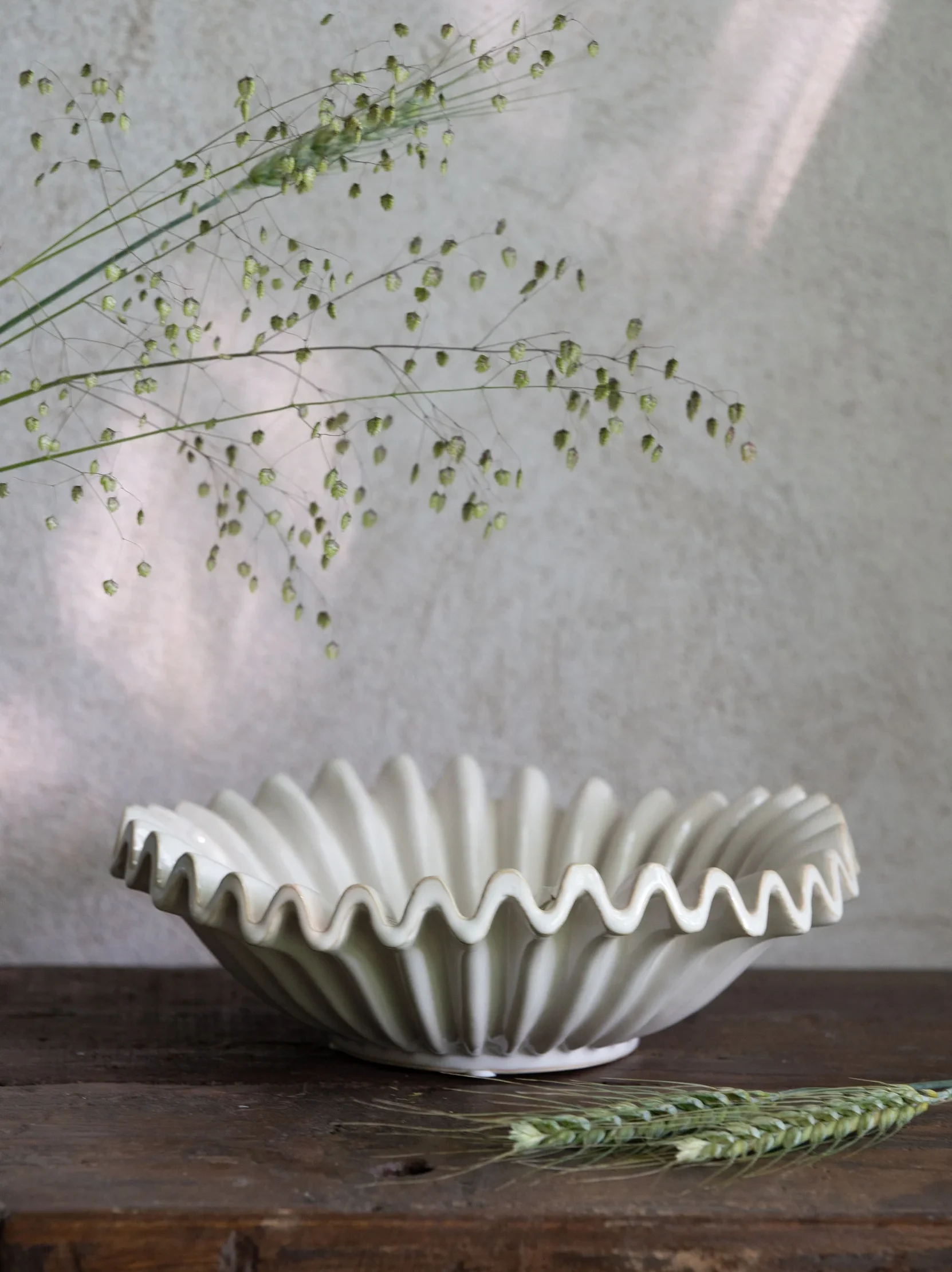 Dekorativ skål / fat i vitmelerad stengods med en vågig vacker kant. Fin att använda som frukt eller salladsskål-