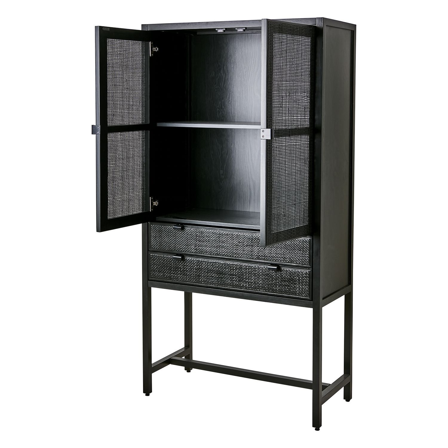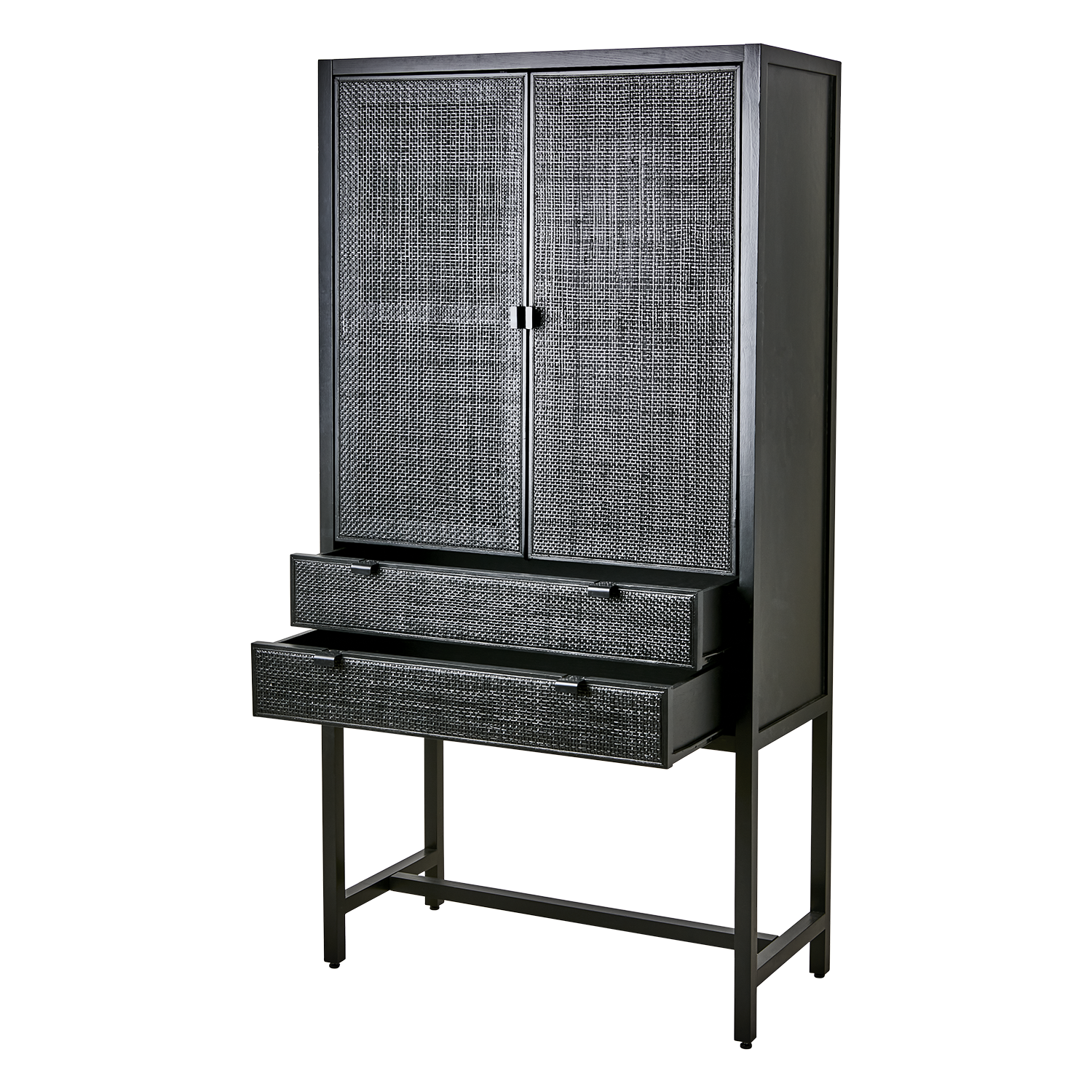 Härligt och rymligt skåp i svart rotting. Levereras omonterad, följ monteringsanvisning. Levereras med justerbara fötter.