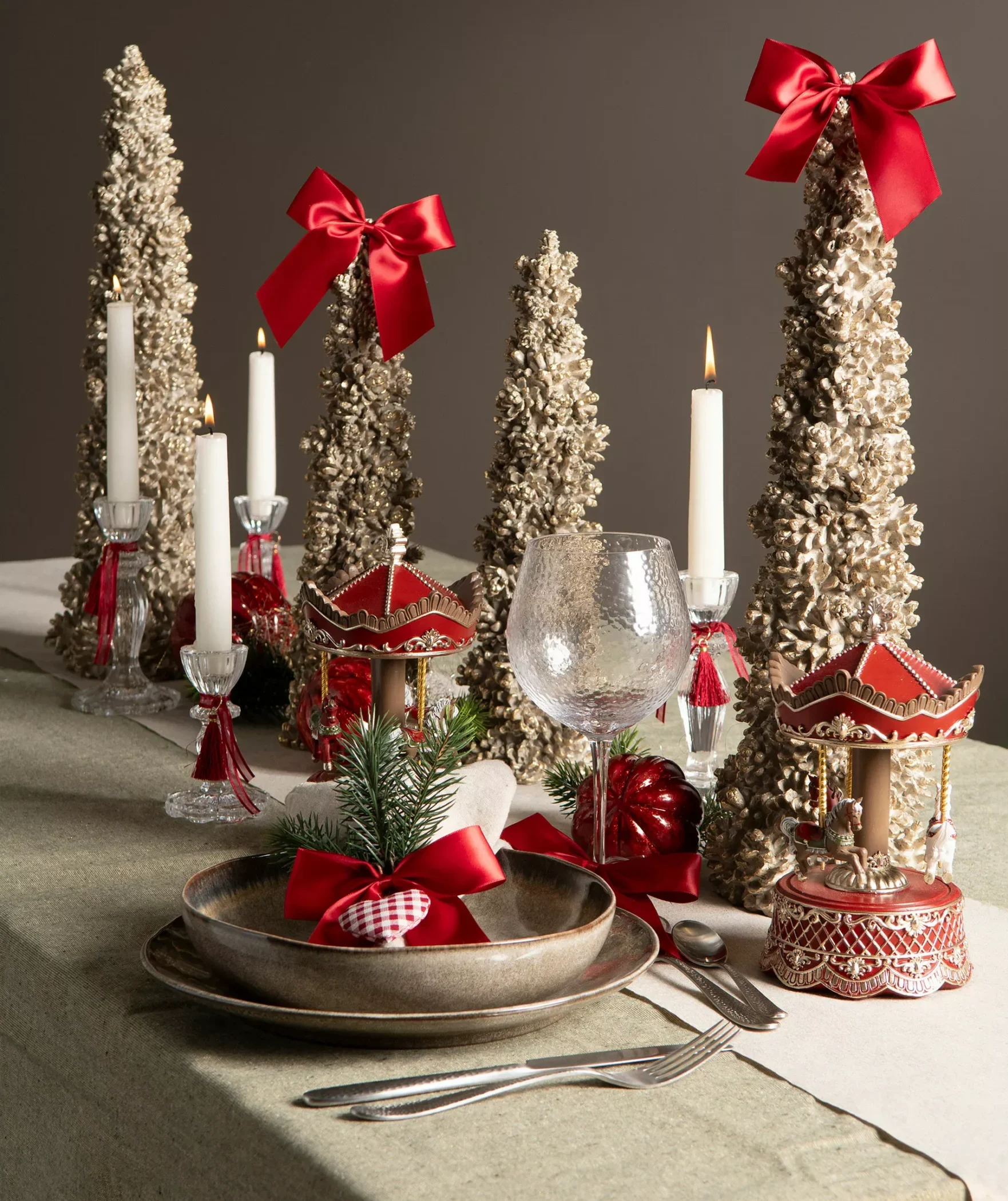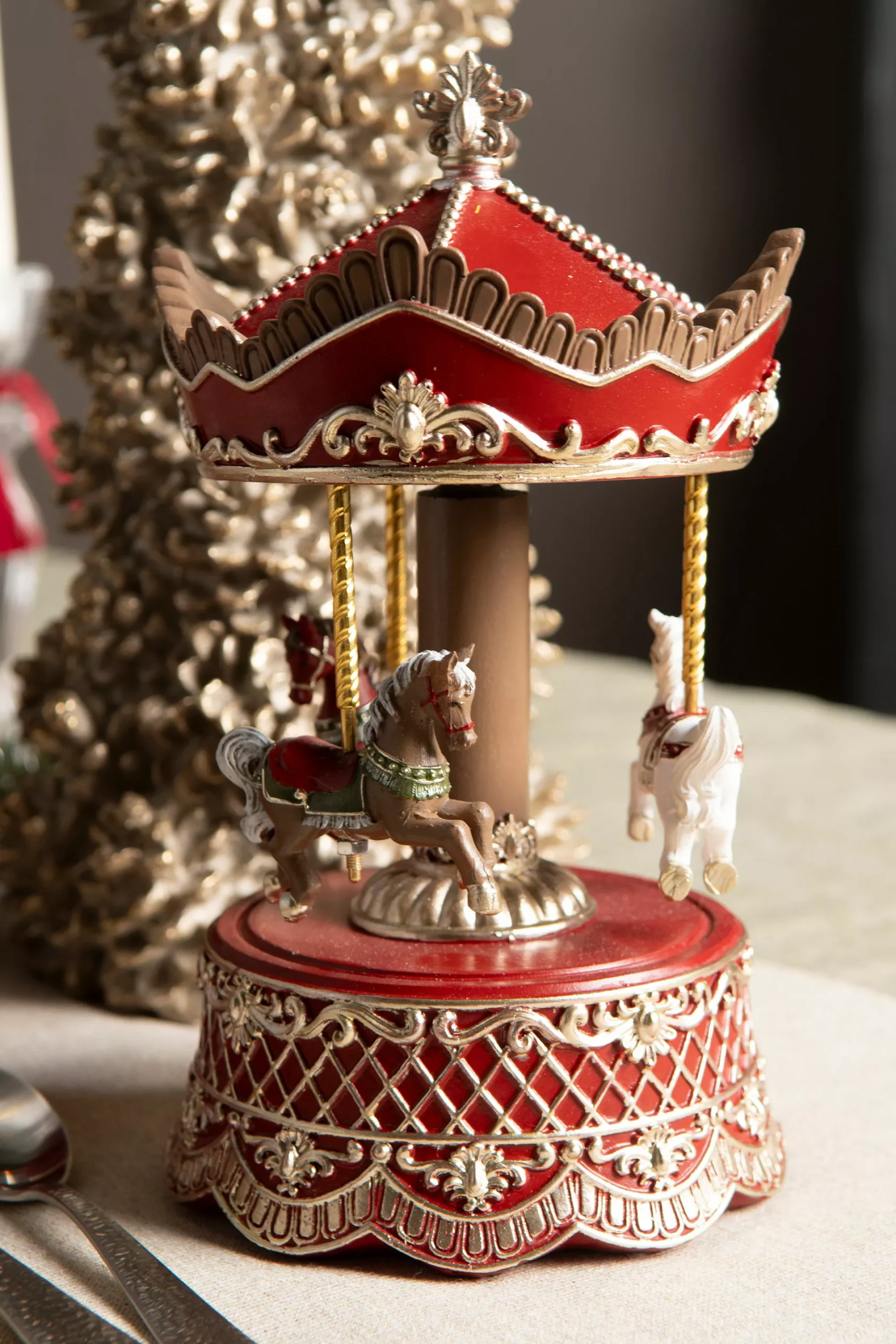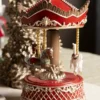 En förtrollande fin speldosa i form av en karusell med hästar. En vacker och nostalgisk juldekoration som fångar julens magi på ett alldeles särskilt sätt. Med sin rika röda färg, detaljerade gulddekorationer och eleganta hästar som snurrar runt, skapar den en stämningsfull atmosfär i ditt hem. Speldosan spelar den klassiska melodin “Jingle Bells,” vilket gör den till ett perfekt tillskott till din julsamling.