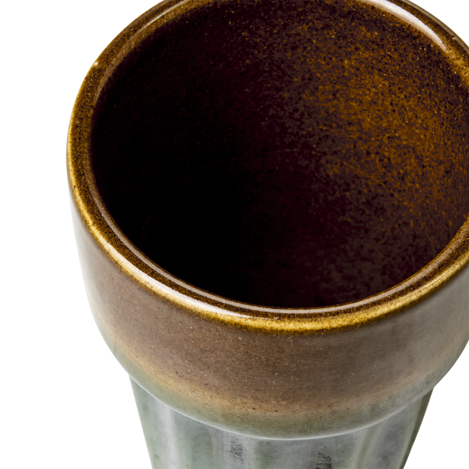 Mysig större mugg / kopp med räfflor i en grönbrun kulör.