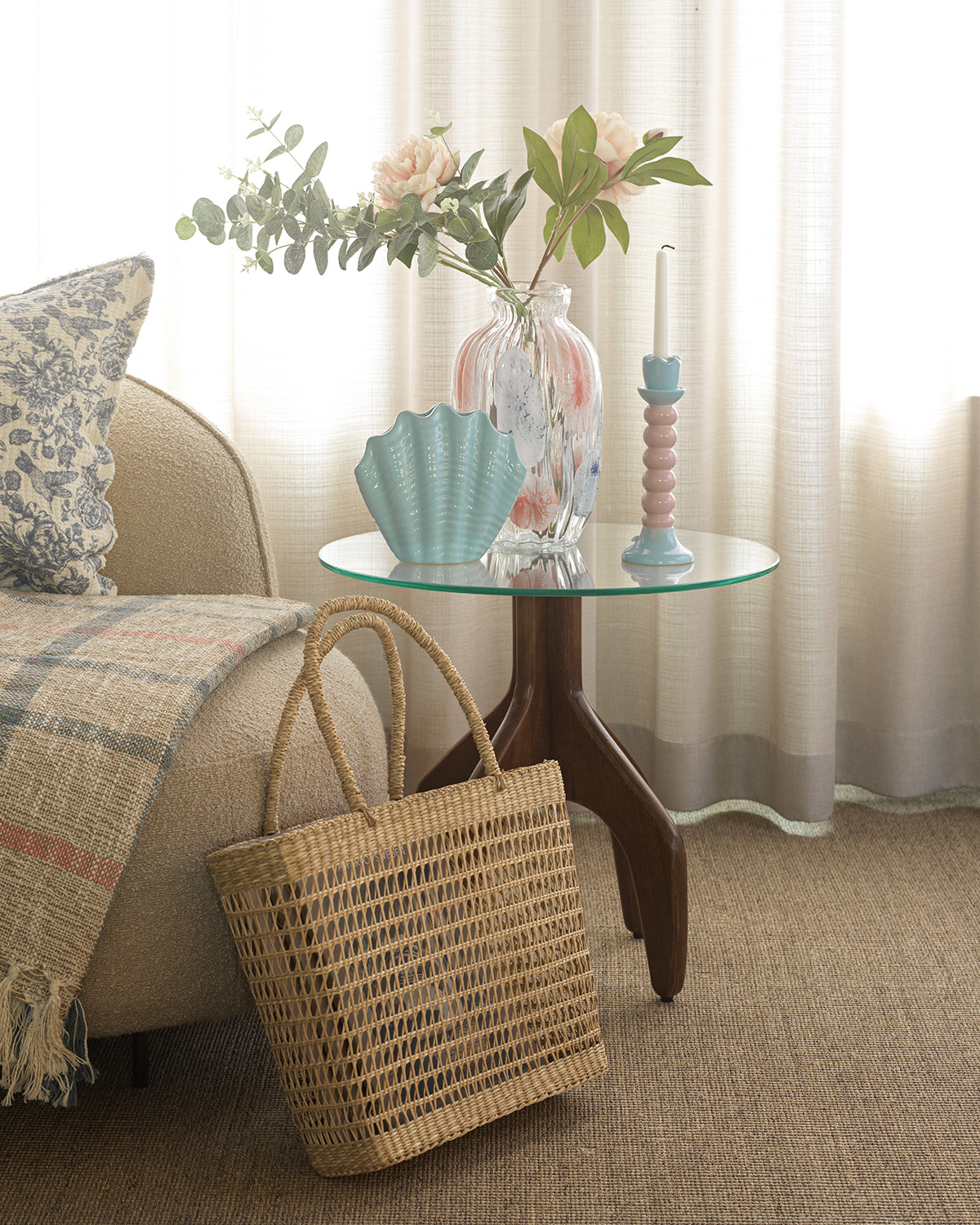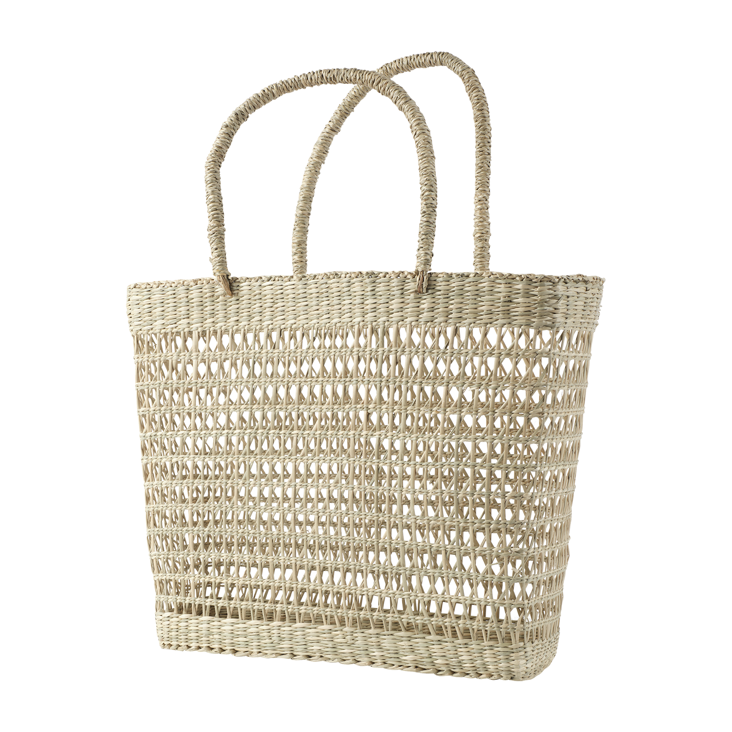 En underbart somrig strandväska i naturmaterial / sjögräs. En lika fin detalj i hallen som användbar på stranden.