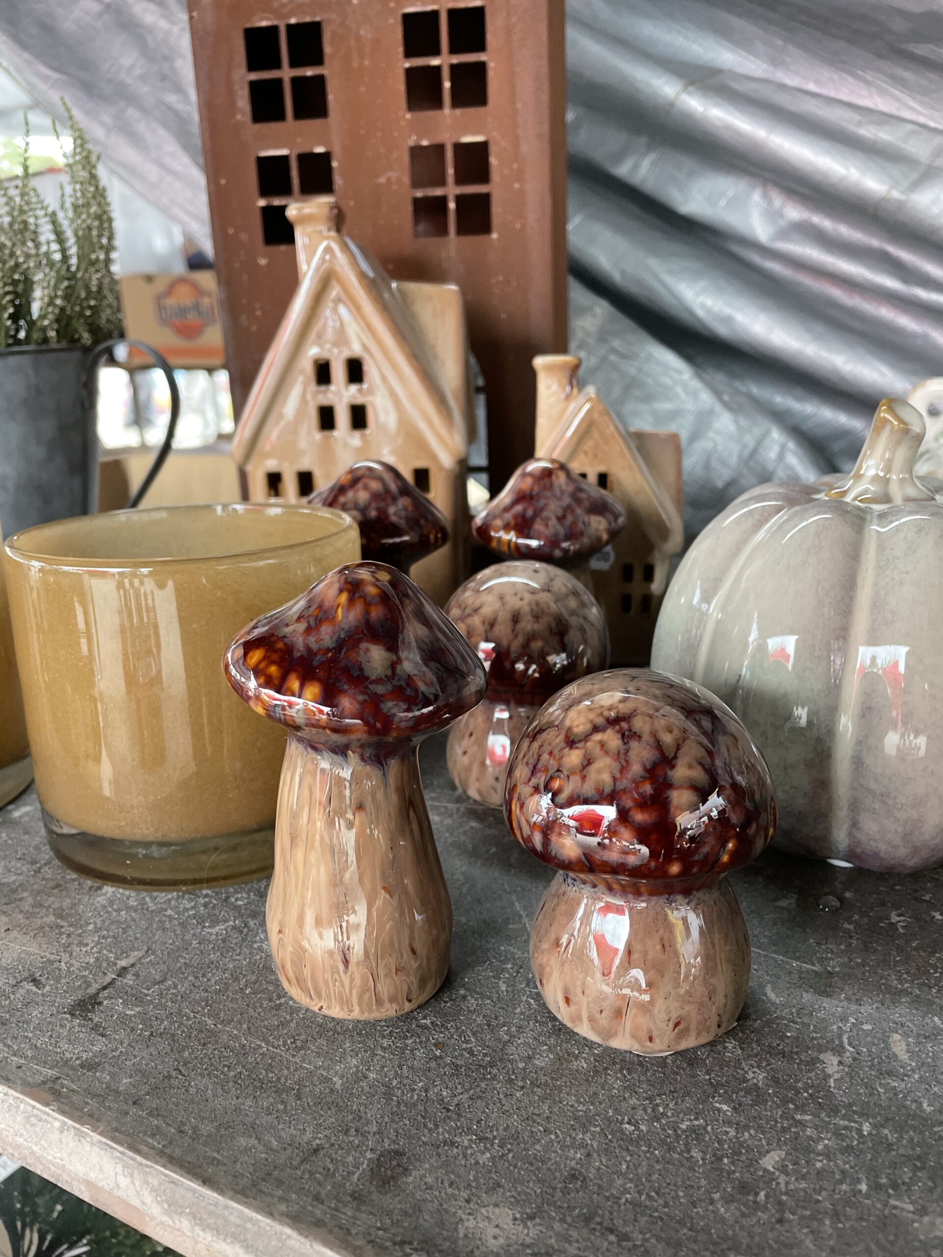 Vackra svampar i brunmerlerat porslin som är fina att dekorera med.