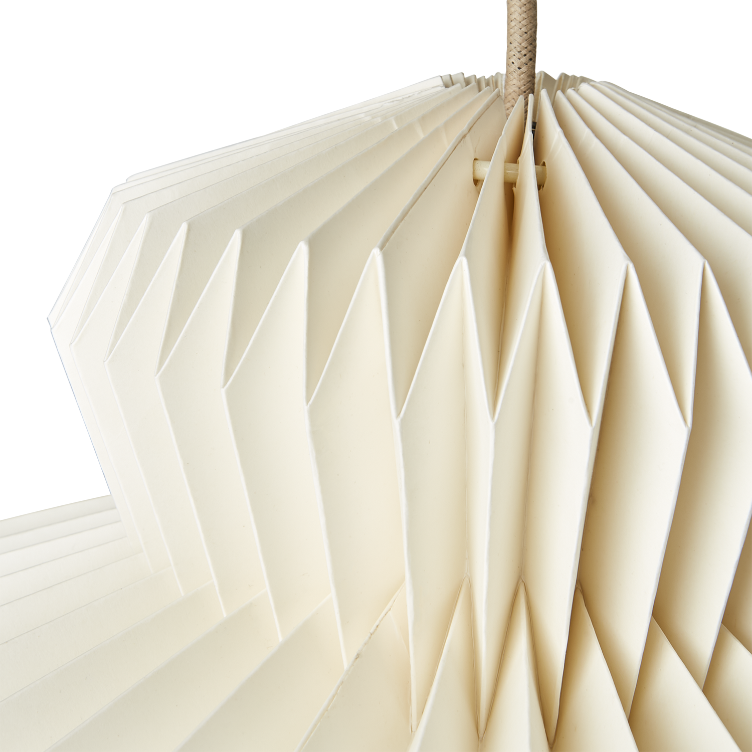 En mysig och dekorativ taklampa / lampskärm i vitt papper. Skydd till ljuskälla ingår. Passar till E14 och E27 sockel.