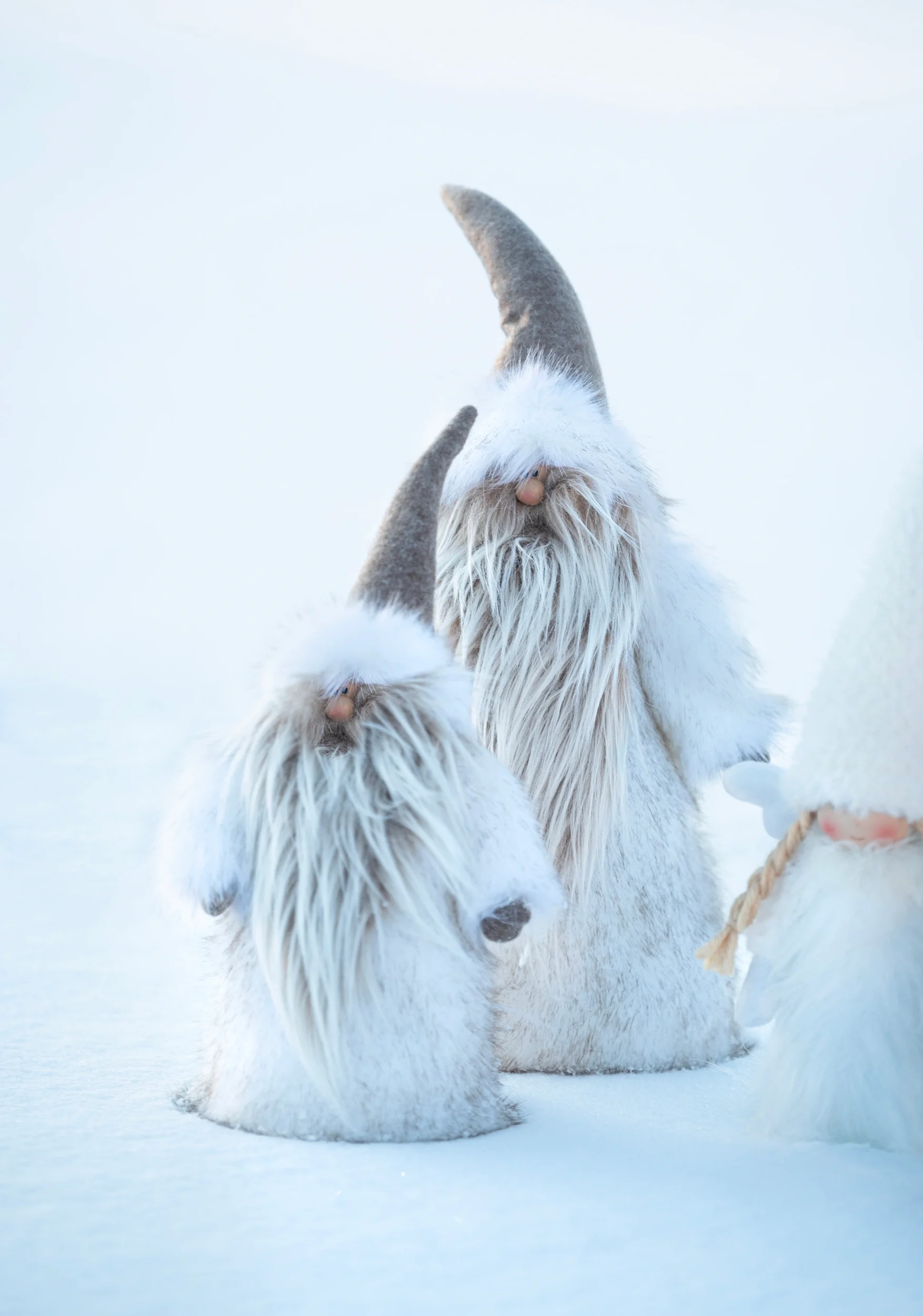 Den mjukaste gosigaste tomten av dem alla! Sittande mjuk tomte i textil, Ludvig med luva neddragen över ansiktet. Tyngd i baken.