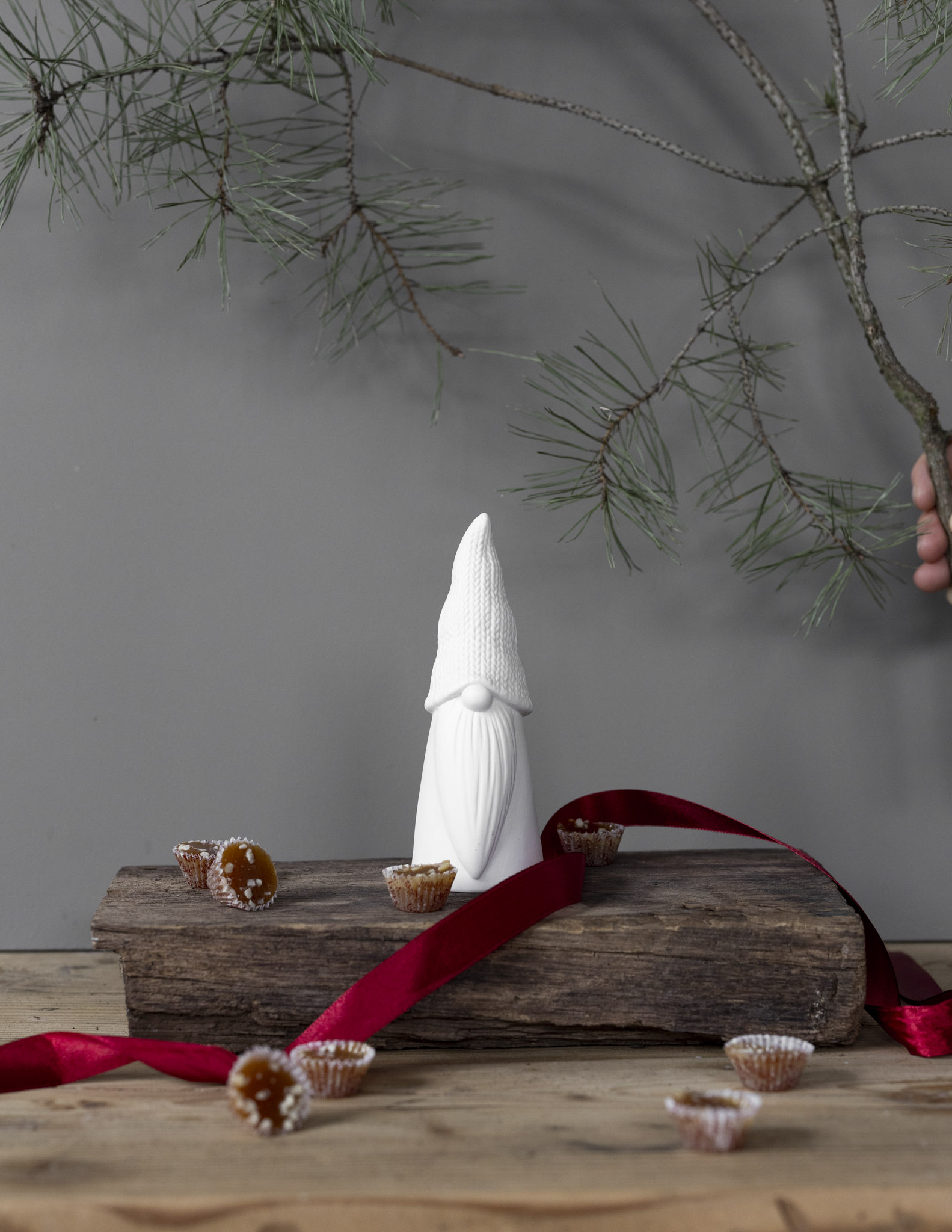 En dekorativ jultomte Kurt i vit matt keramik. En söt detalj att pynta med, passar lika bra på fönsterbrädan som på köksbordet. Den gör sig även väldigt fin tillsammans med våra vita ljushus.