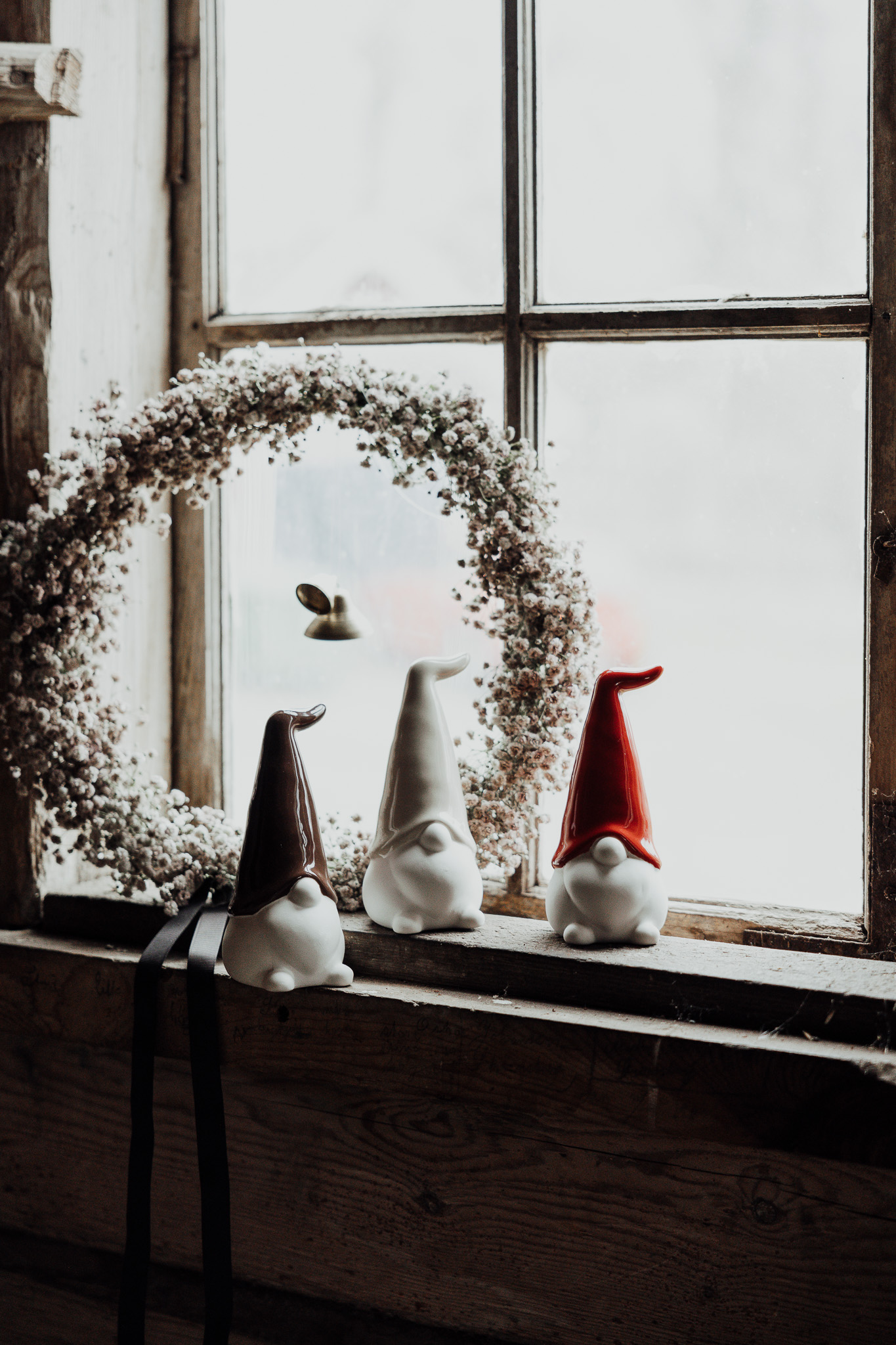 Jultomte Samuel i vit matt keramik och en röd glaserad luva. En söt juldekoration att pynta med, passar lika bra på fönsterbrädan som på köksbordet.