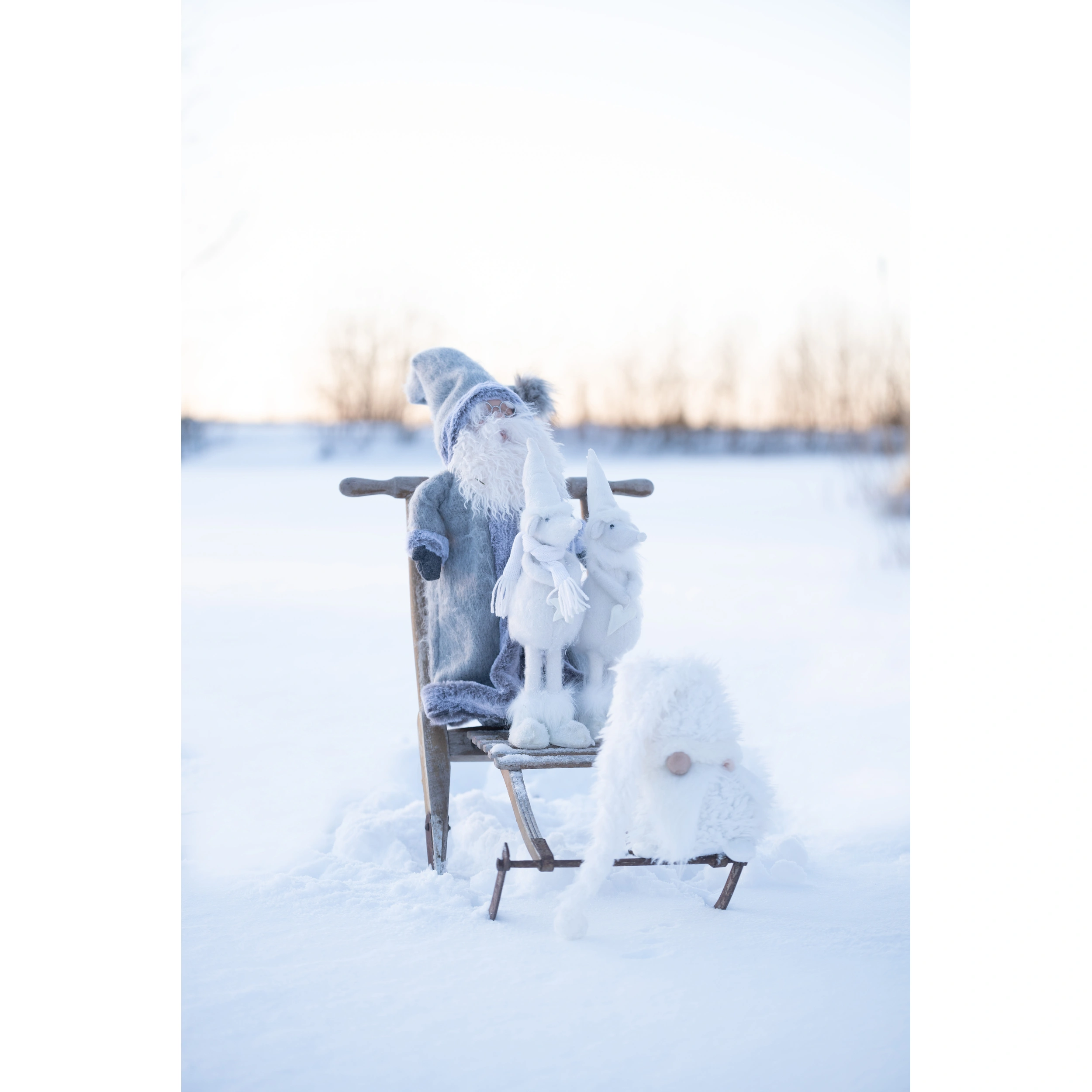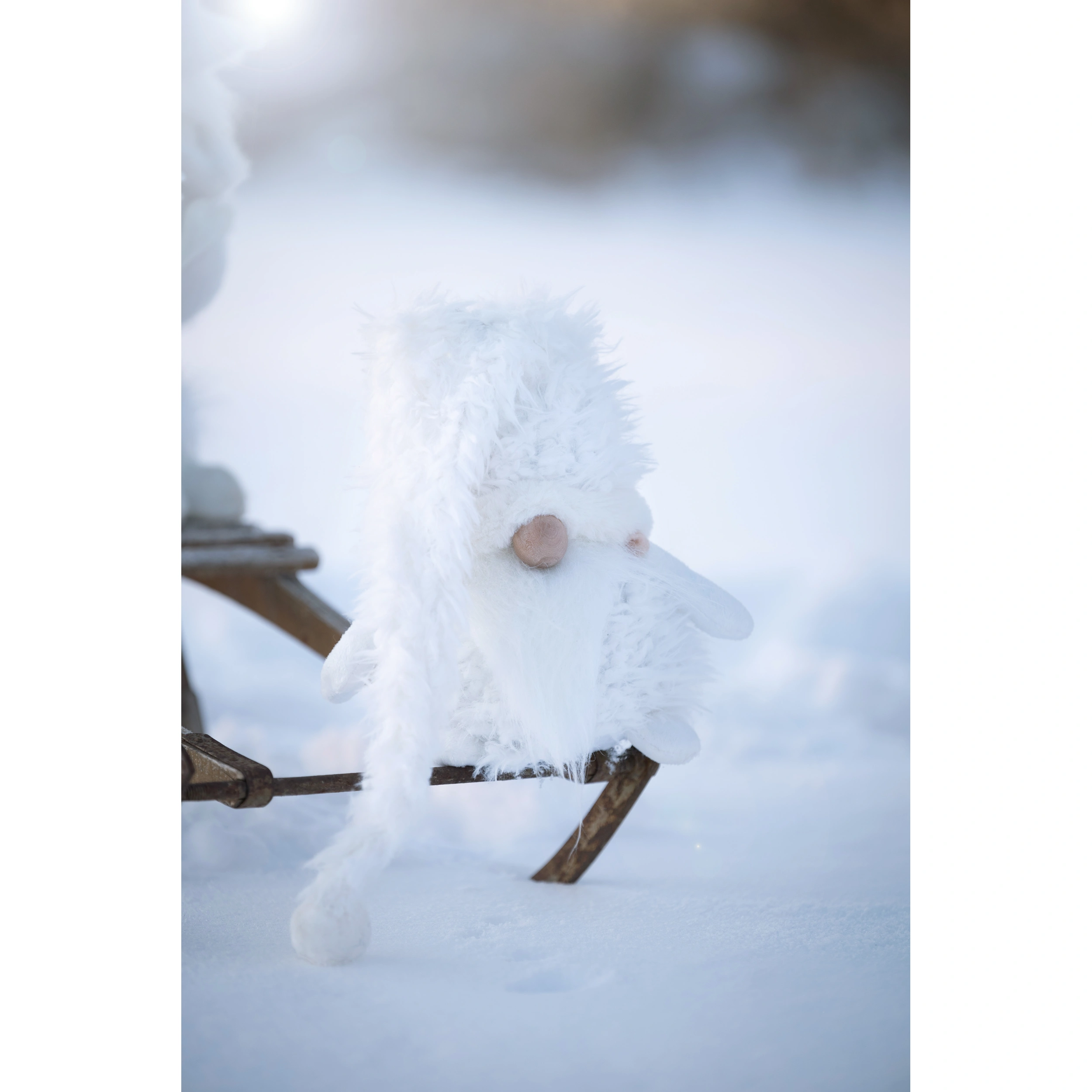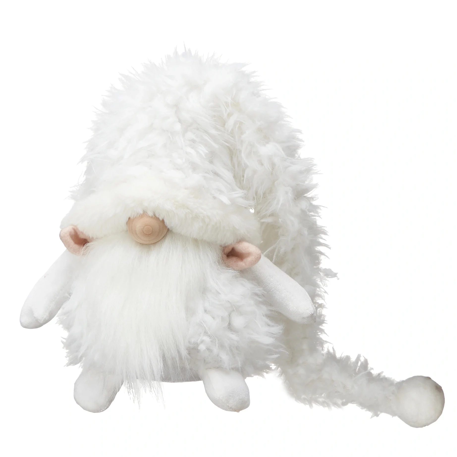 Den mjkaste gosigaste tomten av dem alla! Sittande mjuk textiltomte Tore med luva neddragen över ansiktet. Tyngd i baken. Lång väldigt mjuk gosig mössa.