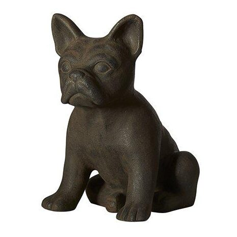 Underbar trädgårdsdekoration i form av en sittande hund / bulldog i mörkbrun terrakotta.