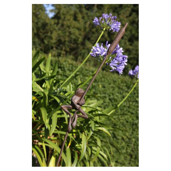 Söt trädgårdsdekoration / växtstöd i form av en groda på kaveldun.