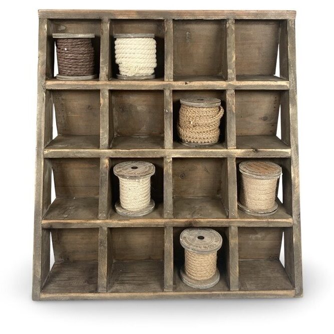 Dekorativ trähylla / display box med 16 fack. Fyll den med vackra ting eller mindre gröna växter. Trähyllan passar lika bra inomhus som på uteplatsen, i växthuset eller i uteköket.