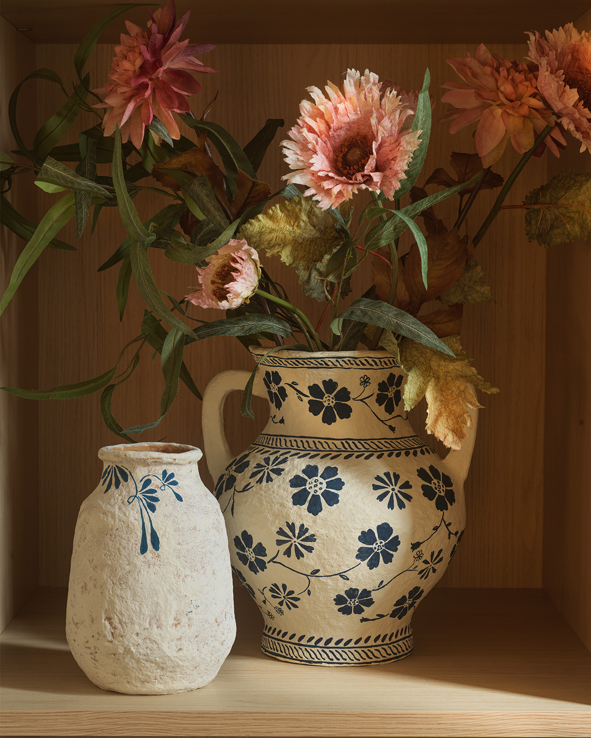 Handgjord urna / vas i återbrukat bomull – cotton maché i en stadig och stabil kvalité. Urnan är vattentät. Då urnan är handgjord och unik så kan form och utseende variera något, vilket även är en del av sin charm. Handmålad.