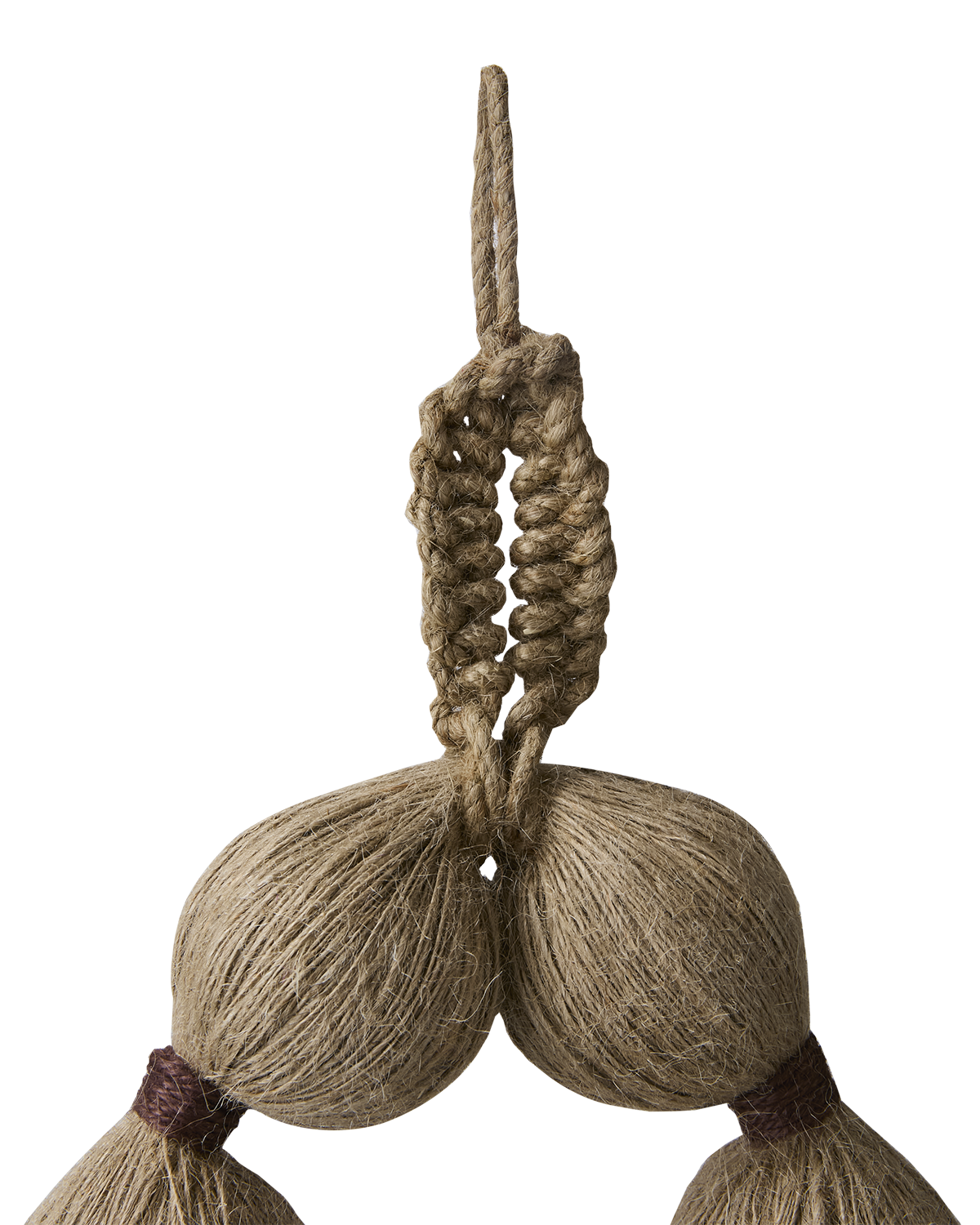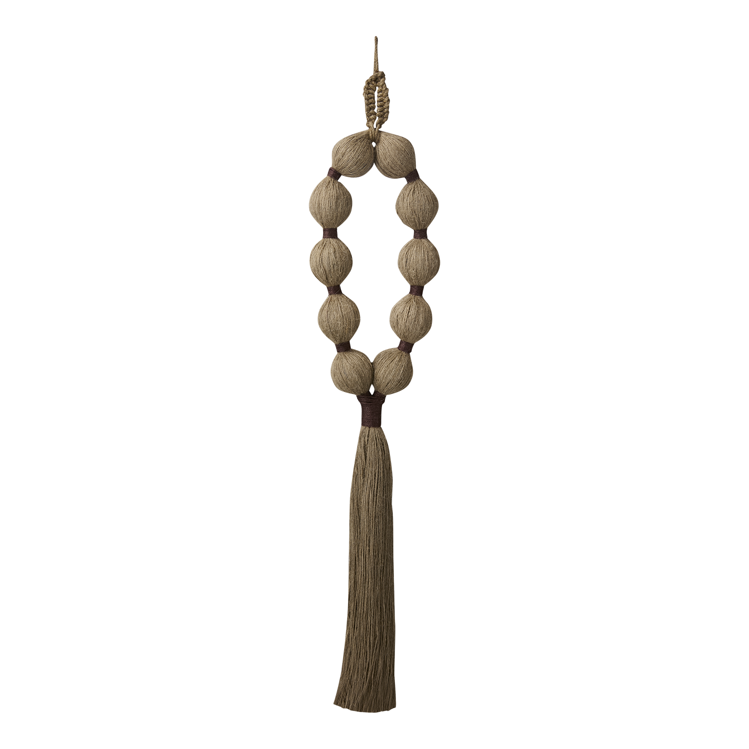 En magiskt vacker och välgjord väggdekoration i naturmaterial. Den hängande väggdekorationen är handgjord och skapar en varm och inbjudande känsla i rummet. Den ovala toppen och dem mjuka bollarna ger ett unikt och lekfullt uttryck med stil.