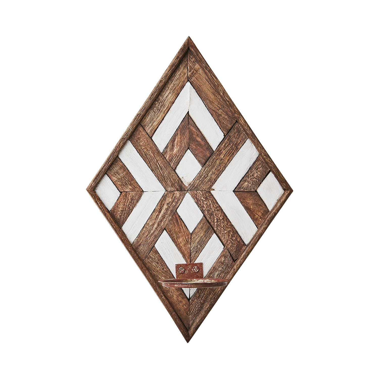 Dekorativ handgjord väggljusstake i återvunnet trä.